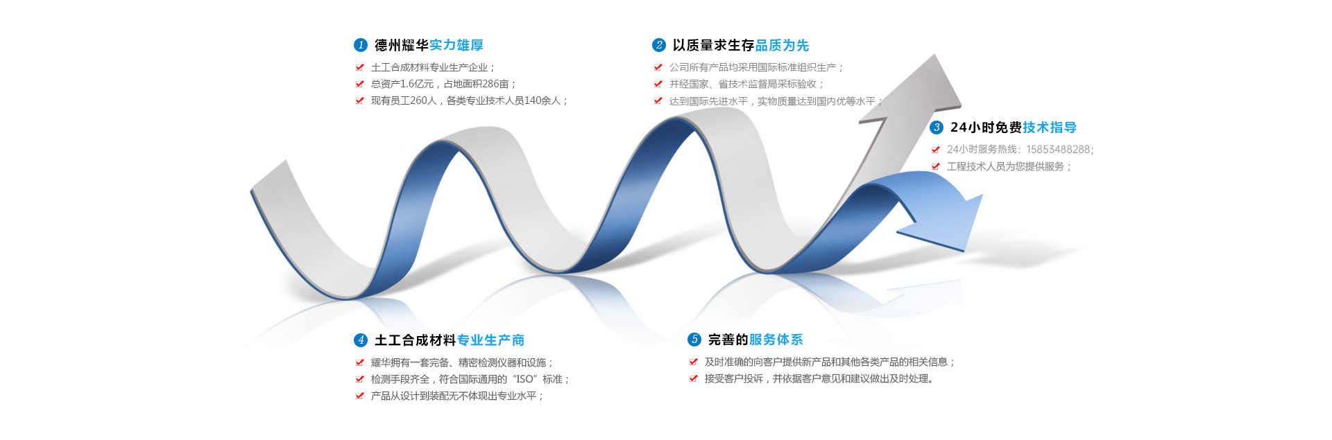 德州耀華土工材料有限公司是目前全國較大、品種其全的土工合成材料專業(yè)生產(chǎn)企業(yè),主要產(chǎn)品有復合土工膜、HDPE土工膜、長絲土工布、防草布、防水土工布、水庫防滲膜、防水板、生態(tài)袋、三維復合排水網(wǎng)、長絲機織土工布、EVA土工膜、無紡布、6.2m寬幅短纖針刺無紡布、6.0m寬幅土工膜、復合防水板、6.0m幅寬長絲土布等。本公司有年產(chǎn)萬噸滌(丙)短纖維兩用生產(chǎn)線、無紡布、PE防水板、復合膜等10余條生產(chǎn)線,工藝技術(shù)先進。HDPE土工膜、復合土工膜價格低廉...【更多】